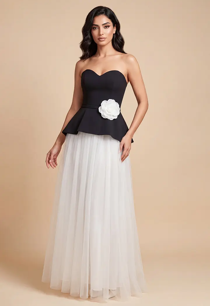 HomeEvening dress with a corset design and tulle skirtEvening dress with a corset design and tulle skirt0DescriptionCorset evening dress with flowing tulle skirt and elegant details.ColorBlack-WhiteBeigeSizeLXL2XL3XL4XL