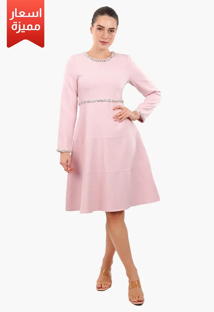 الرئيسيةفستان ميدي رسميفستان ميدي رسمي0الوصففستان ميدي موحد اللون بتنورة واسعة وأكمام طويلة مع ياقة دائرية، بتفاصيل ناعمة من شك الكريستال.اللونأسودعنابيورديبيجابيضالقياسXXSXSSMLXL2XL3XL