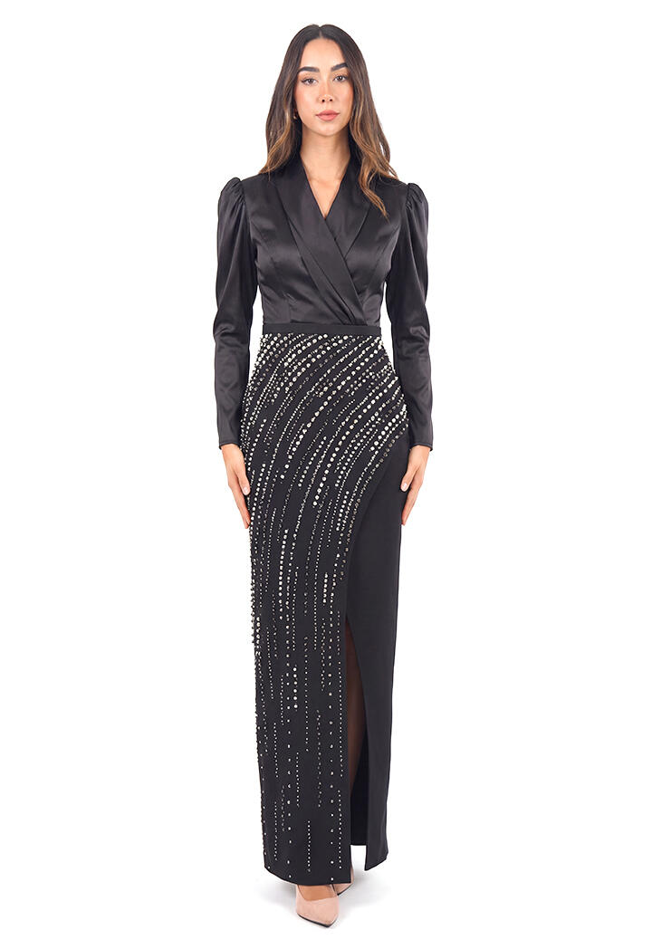 الرئيسيةفستان ملتف مطرزفستان ملتف مطرز0الوصففستان استقبال بشق أمامي ، أكمام طويلة وصدر ملتف من الساتان ، مطرز بحبات الكريستال.اللونأسودسكريالقياسMLXL2XL4XL