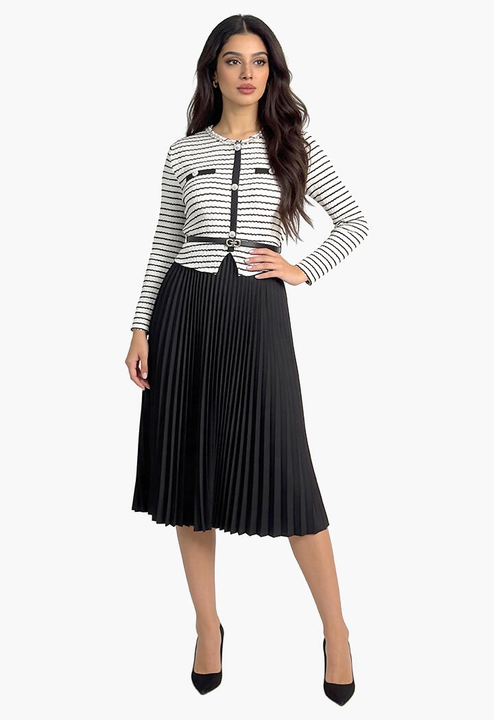 بيرتي فاشون نافذتك لأحدث صيحات الموضة | فستان قصير بتنورة مكسّرة وبلوز مخطط أنيق